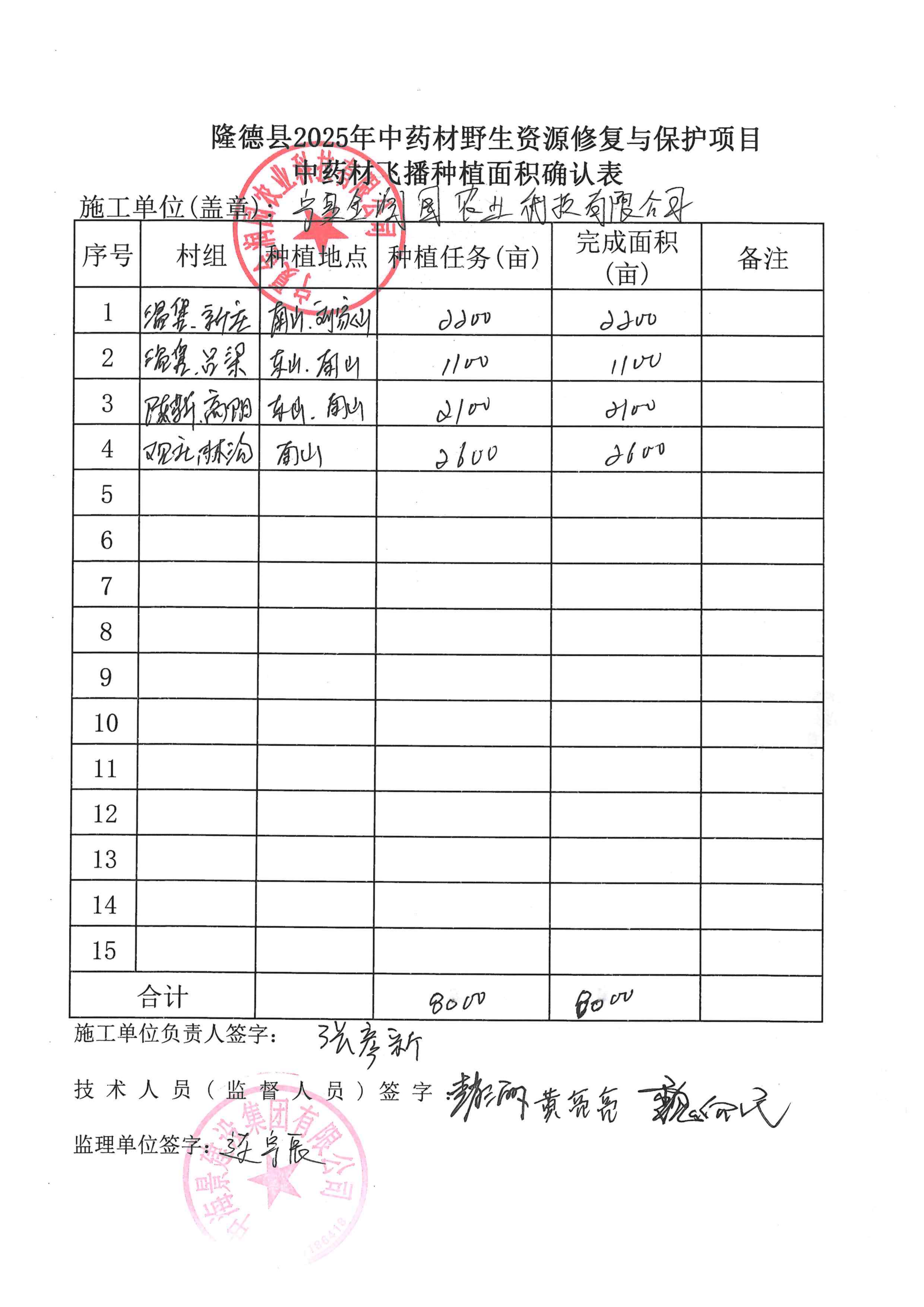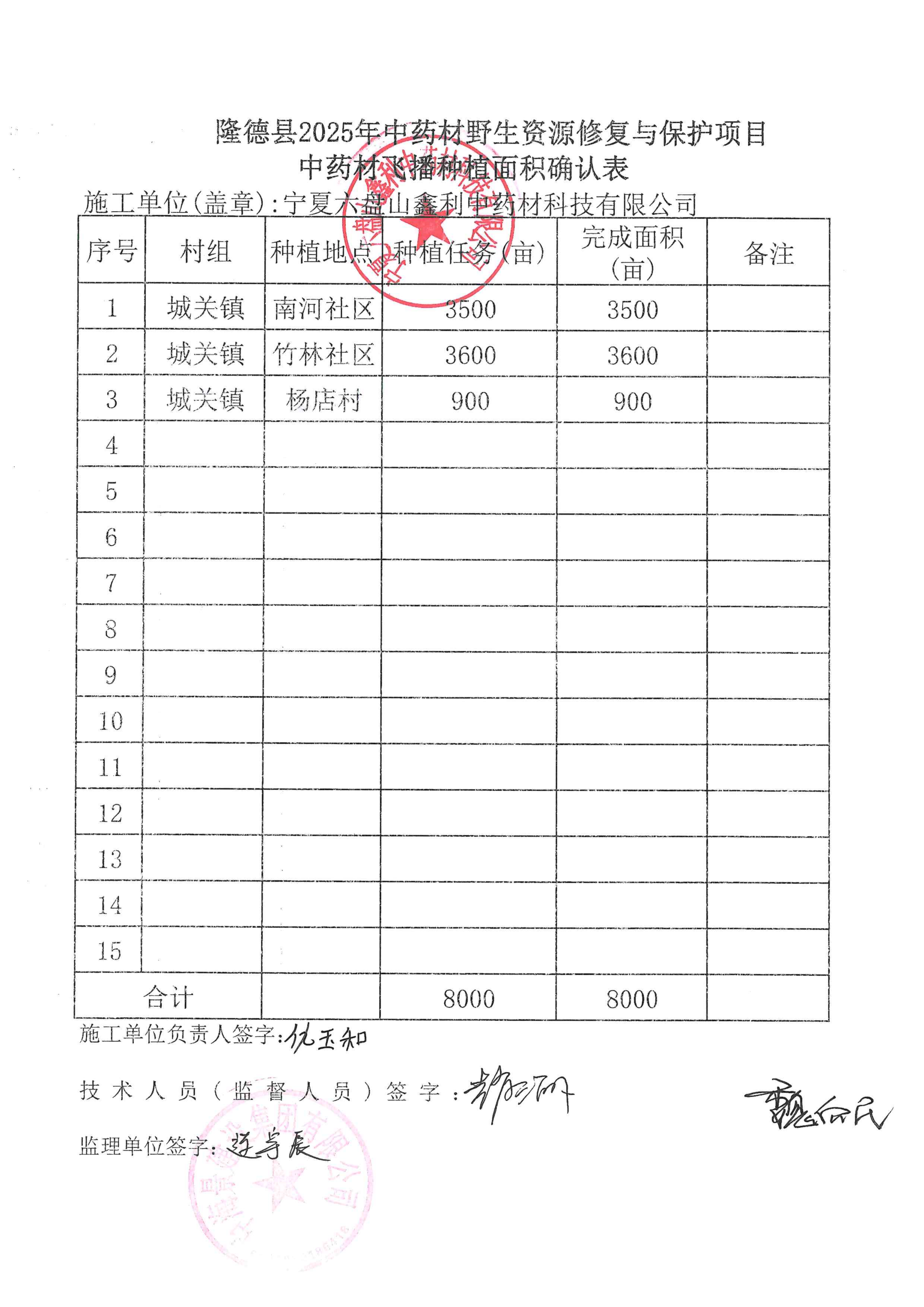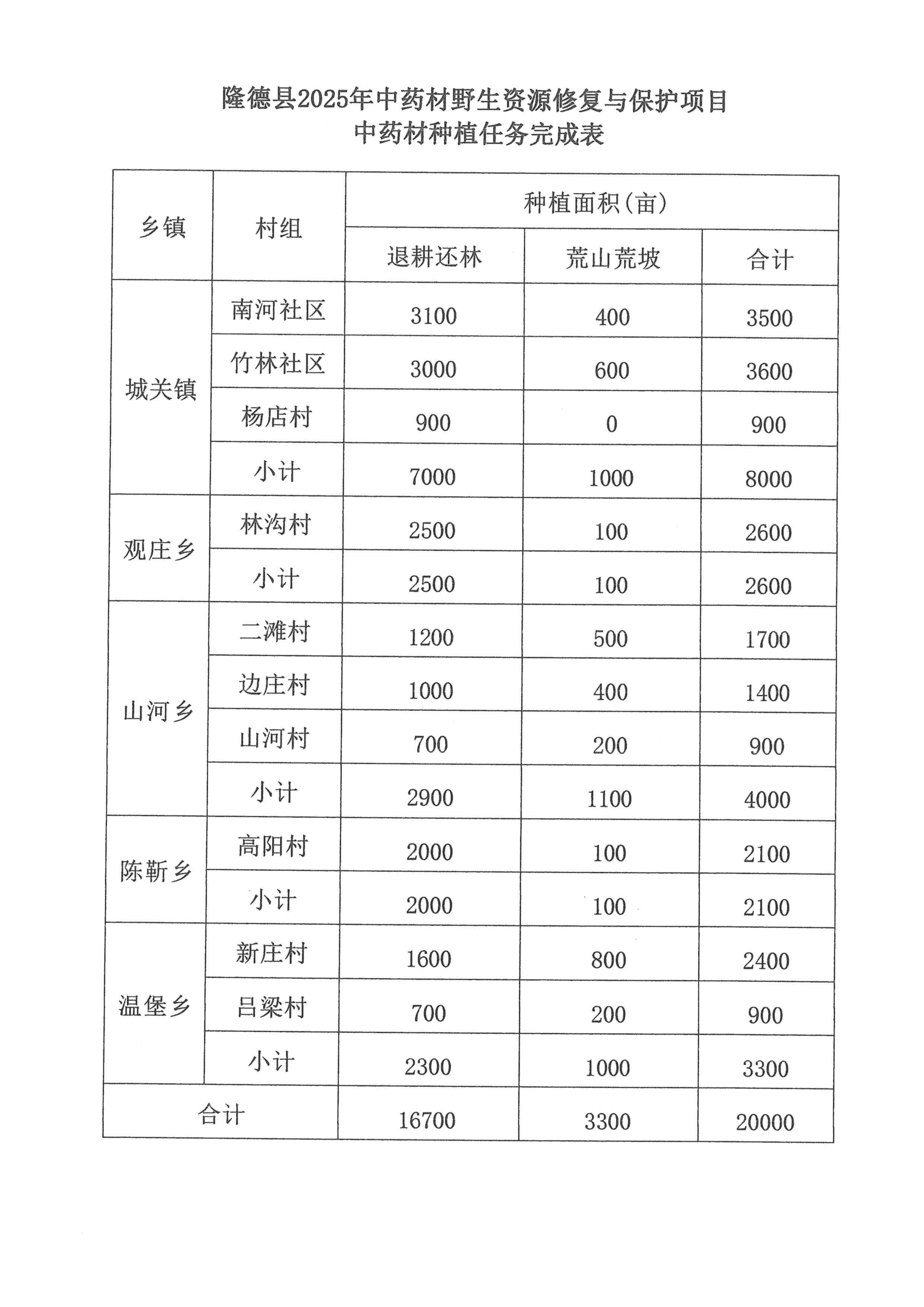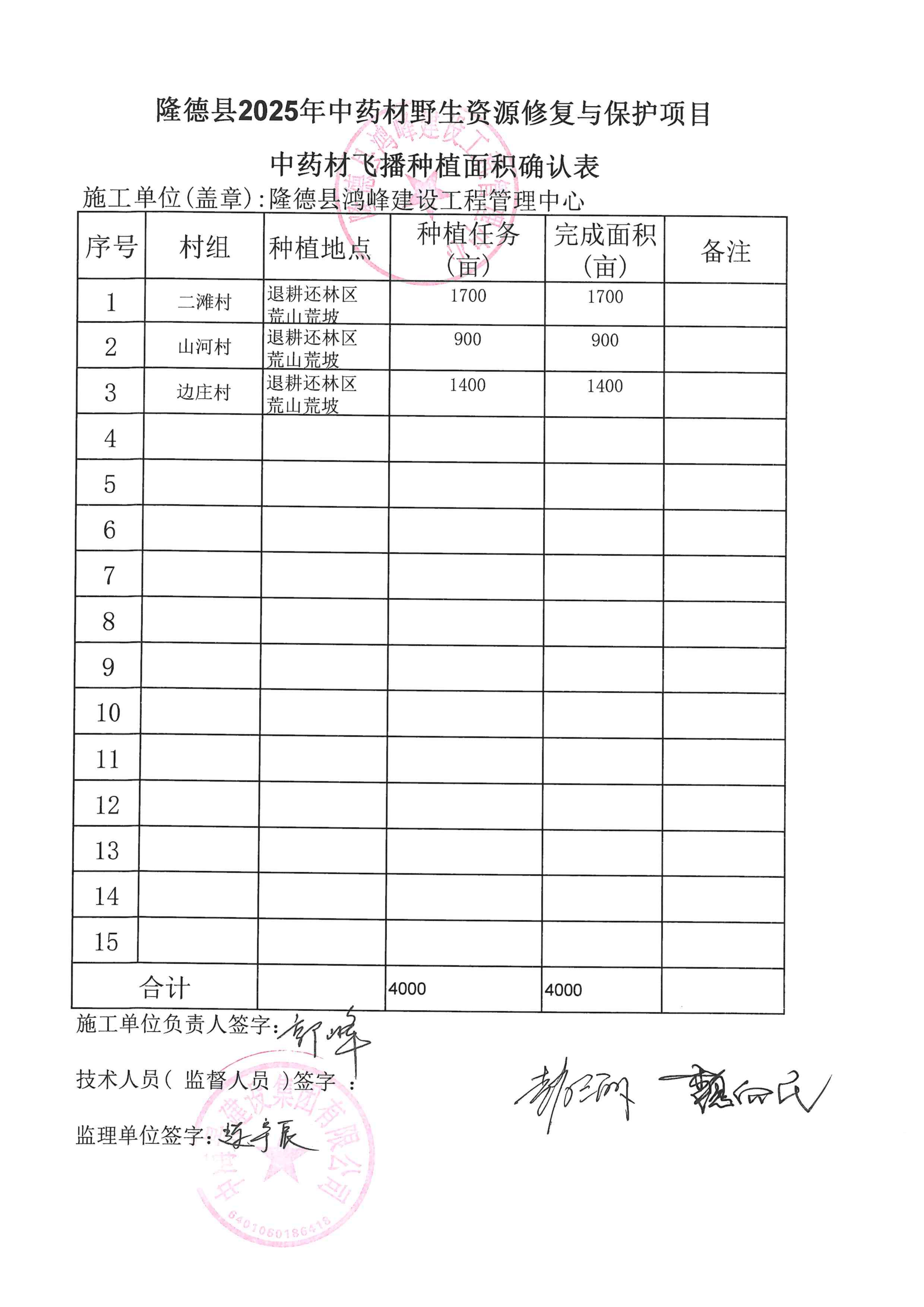 附件:隆德县2025年中药材野生资源修复与保护项目中药材飞播种植面积确认表