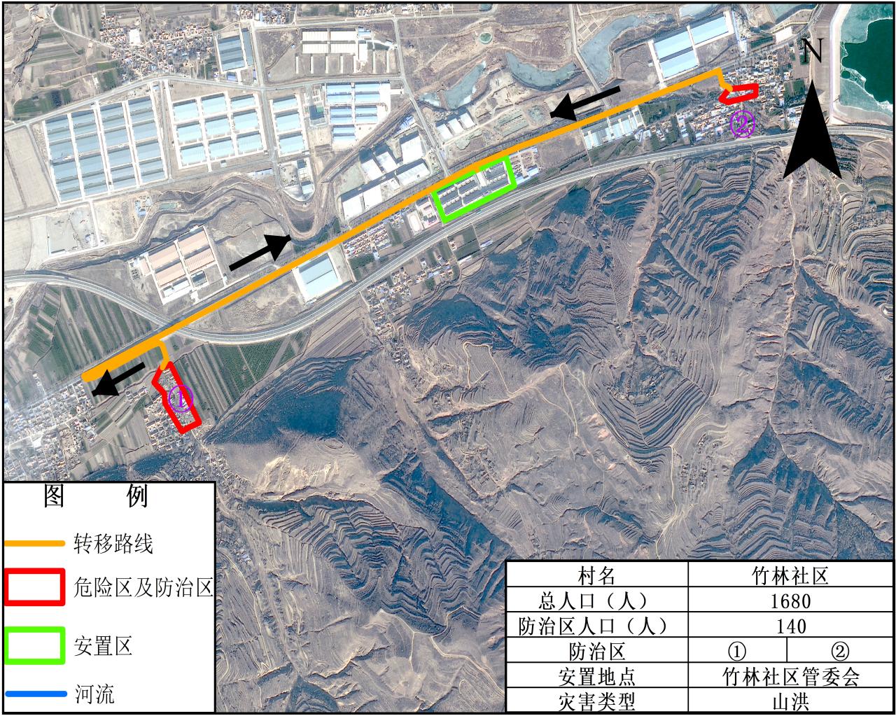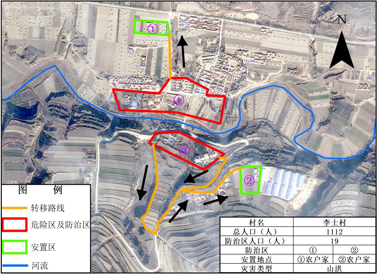 隆德县山洪灾害危险区及防治区人员转移安置图