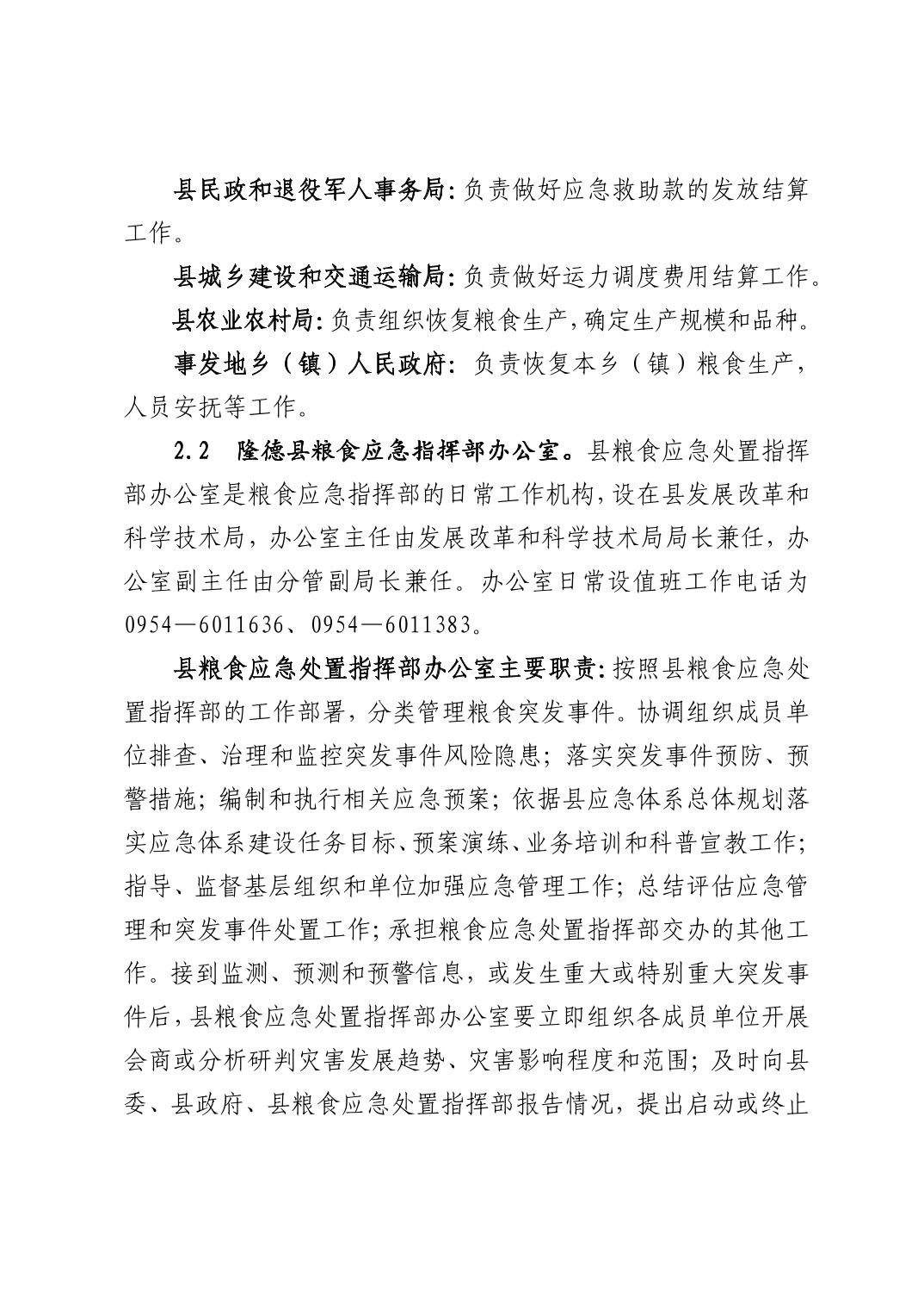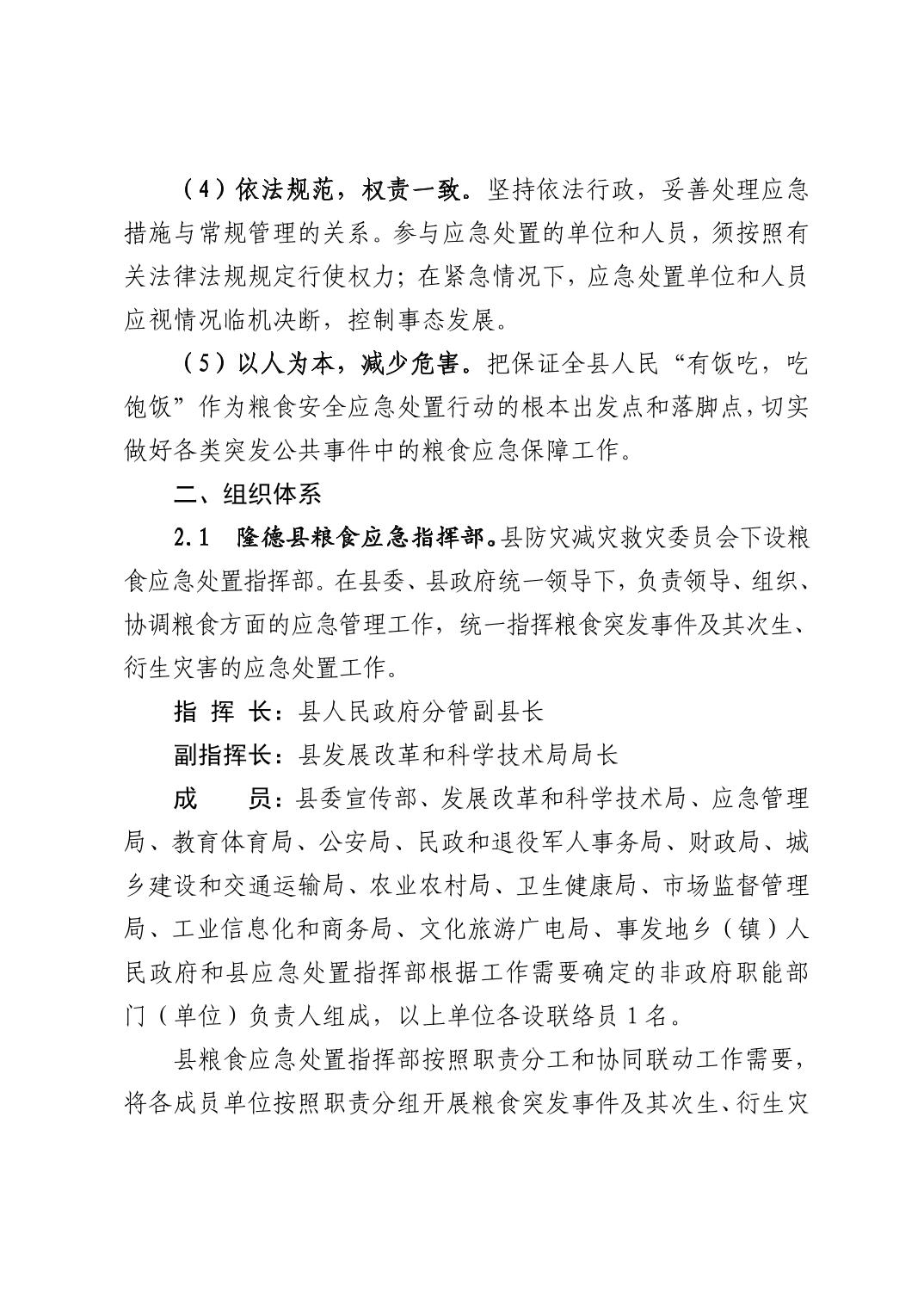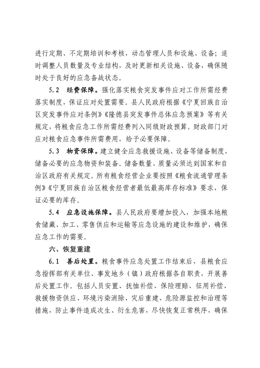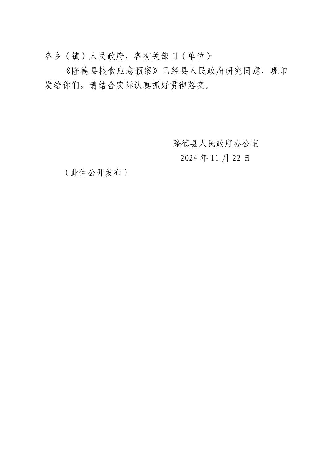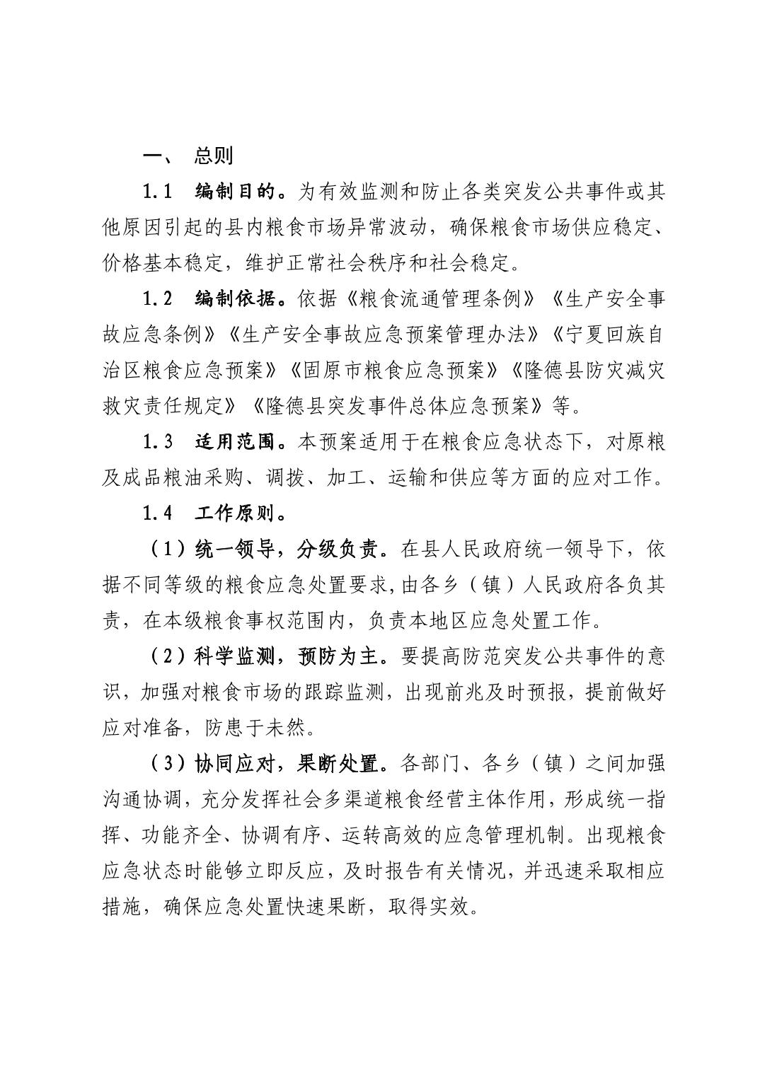 隆德县人民政府办公室关于印发《隆德县粮食应急预案》的通知